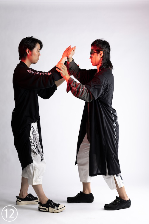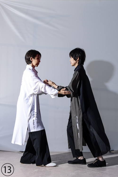 当セイゴオちゃんねるでは、この耀司さんと松岡の三度目のコラボレーションによる洋服を、「册影帖」でおなじみの写真家・川本聖哉さんの撮りおろしによって、特別コンテンツとしてご紹介します。モデルは、豪徳寺イシス館で10年以上にわたって太極拳の稽古を続けている松岡正剛事務所・編集工学研究所の有志です。ポージングは、指導者である今井秀実先生に監修していただきました。なお、タイトル「両儀抄」の「両儀」は、太極拳が重視する「陰陽」をあらわしています。